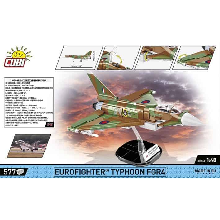 De Eurofighter Typhoon is een Europese multifunctionele straaljager met een deltavleugelindeling. Het is een van de modernste gevechtsvliegtuigen ter wereld. Groot-Brittannië exploiteert deze vliegtuigen onafgebroken sinds 2003. Momenteel vormen straalvliegtuigen van dit type de ruggengraat van de Royal Air Force (RAF). Eurofighter Typhoon FGR4 kan lucht-, zee- en landmissies uitvoeren. Dit vliegtuig kan een verscheidenheid aan wapens vervoeren, waaronder raketten en geleide bommen. Het is ook uitgerust met de nieuwste generatie elektronische systemen en luchtvaartelektronica. Afhankelijk van de versie bedraagt de maximumsnelheid ongeveer Mach 2 (2450 km/u).